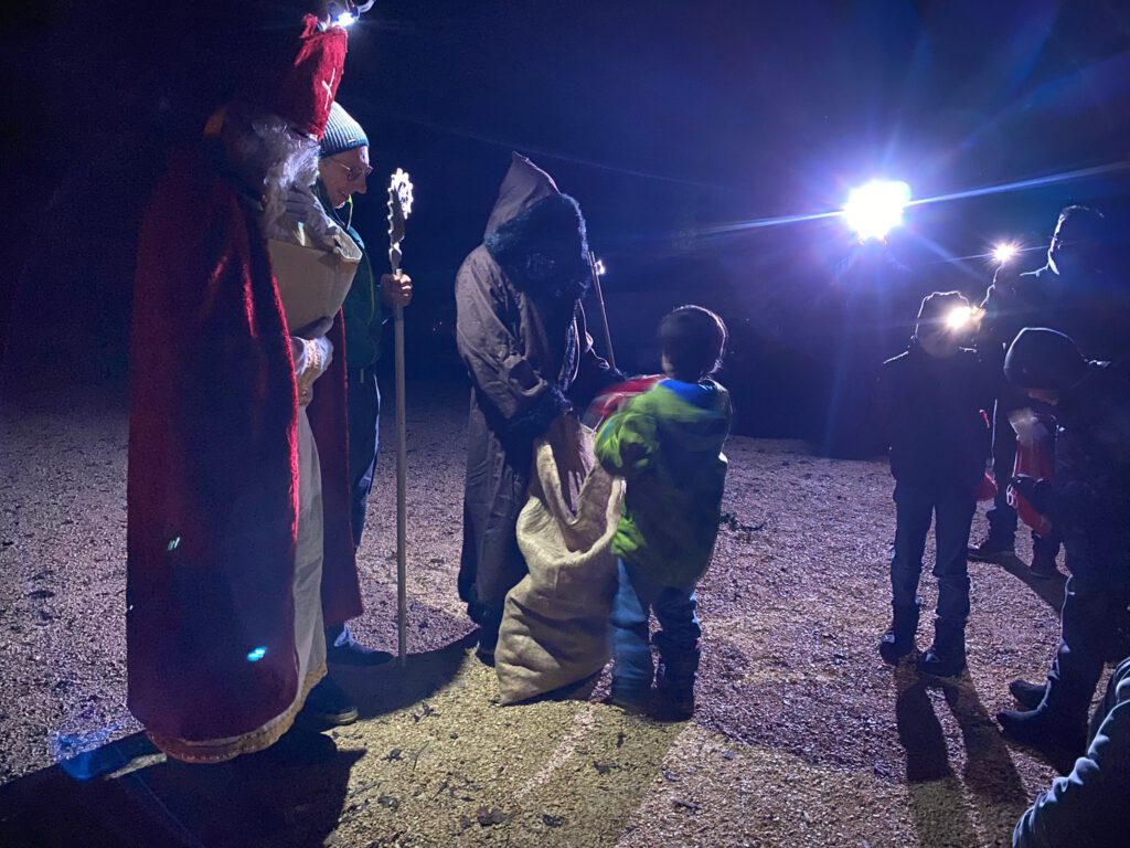 Am Freitag, den 05.12. hat uns der Nikolaus mit seinem Knecht Ruprecht an der Grillhütte in Deisendorf besucht. Es gab leckere Würstchen vom Grill und Punsch und Plätzchen dazu, so dass das Warten auf den Nikolaus versüßt wurde. Jedes Kind durfte in den großen Sack greifen und sich ein eigenes Nikolaussäckchen mitnehmen. Glückliche Kinderaugen, ein Lied für den Nikolaus und schöne Stunden am großen Lagerfeuer machten den Abend zu etwas ganz Besonderem.